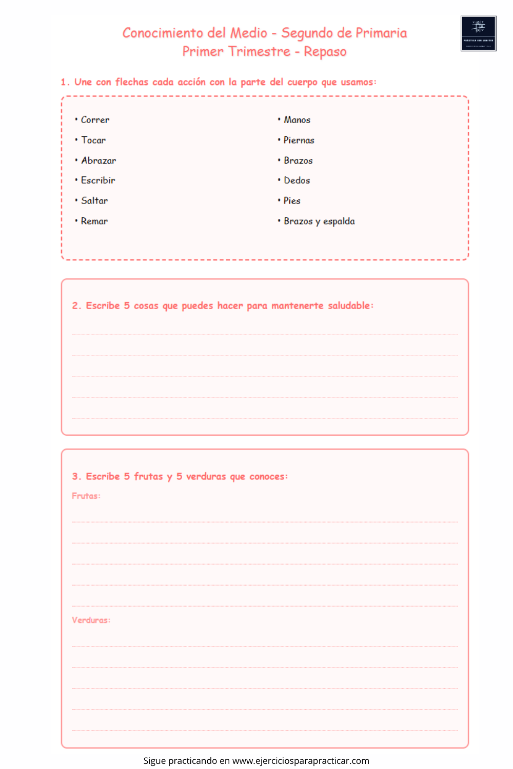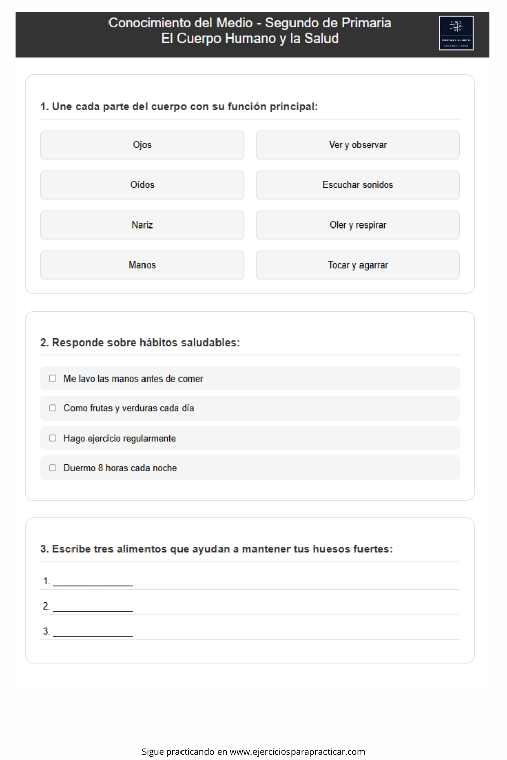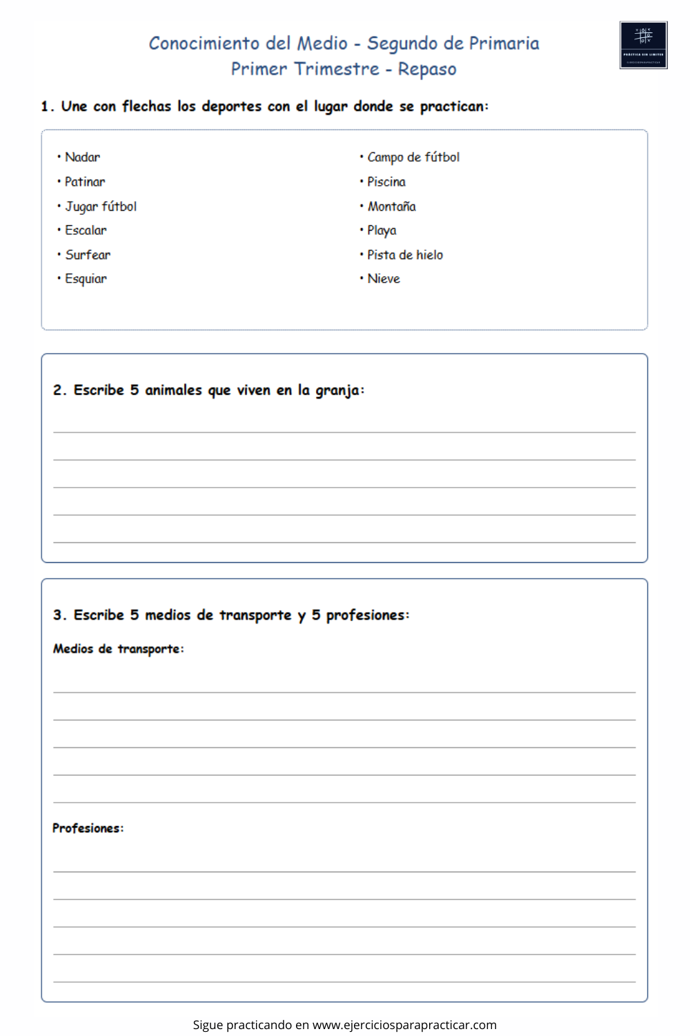 Nuestros ejercicios de Conocimiento del Medio segundo de primaria están diseñados para ser claros, accesibles y efectivos. Cada ejercicio se enfoca en enseñar a los niños a reconocer y aplicar estos conceptos en su vida diaria de manera significativa. Además, nuestros PDFs descargables te permiten practicar en cualquier momento y lugar, ofreciendo la flexibilidad necesaria para un aprendizaje continuo.